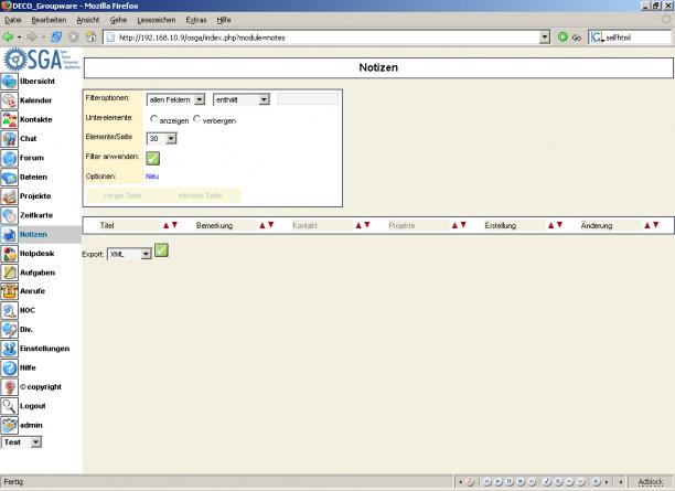Hier können verschiedene Screenshots von OSGA angesehen werden. Es handelt sich dabei um Beispiele, in denen keine echten Daten angezeigt werden. Eine Demo der Software ist auch möglich, indem wir Ihnen gerne auf Anfrage einen Zugang bereitstellen. Wenden Sie sich dazu am besten an info@decoit.de.